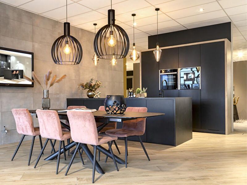 Hier vindt u inspiratie voor uw nieuwe keuken. Wij geloven dat een keuken meer is dan alleen een functionele ruimte. Het is een plek waar u kunt koken, genieten, ontspannen en samen zijn met vrienden en familie. Onze showroom biedt verschillende keukenstijlen en materialen om uit te kiezen, zodat u uw ideale keuken kunt visualiseren. Onze deskundige medewerkers staan altijd voor u klaar om u te adviseren en te helpen bij het ontwerpen van uw keuken. Kom gerust langs en laat u inspireren!