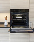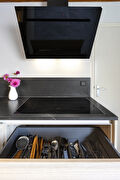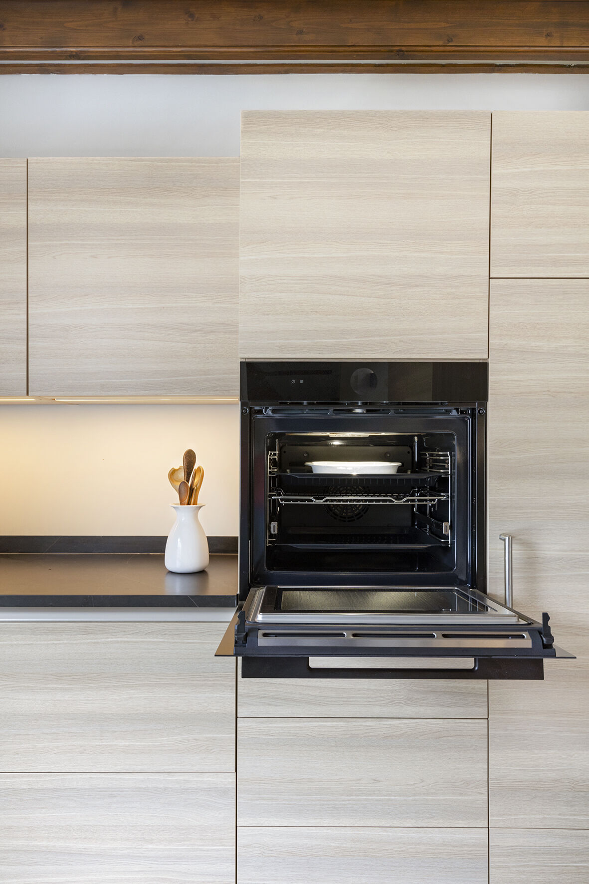 De keuken in Spijk is voorzien van hoogwaardige Bosch-apparatuur. De Bosch I8 Bakoven met magnetron en ecoclean, de Serie I8 inductiekookplaat met flexzones en de Serie I4 afzuigkap met touchcontrol.
