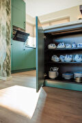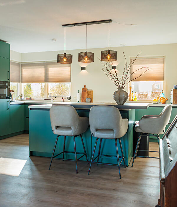Tijdens het ontwerpproces kozen zij uiteindelijk voor een Beckermann-keuken in de kleur Agave Groen. Een kleur die karakter geeft aan de ruimte, maar tegelijkertijd rustig blijft in het interieur.