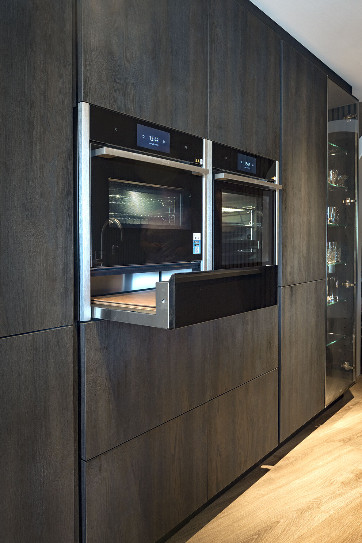 Onder de oven kozen ze voor een warmhoudlade, die het mogelijk maakt om gerechten warm te houden zonder ze verder te garen. Dit is ideaal wanneer u verschillende gerechten tegelijkertijd bereidt of wanneer u wilt wachten totdat alles tegelijk klaar is. Zo wordt alles op de juiste temperatuur geserveerd.